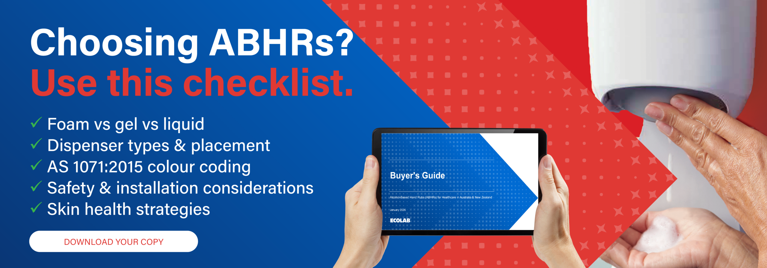 Universal tamper resistant ABHR solution: whether you prefer liquid, gel or foam presentation – Ecolab has the solution!